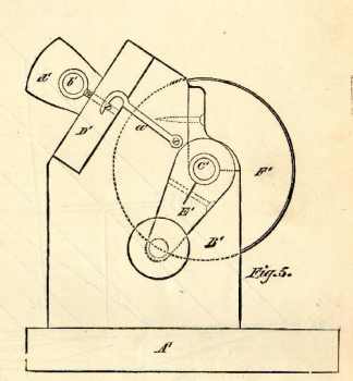 The crank, E�, is of wood, and is split from the shaft toward the handle and clamped tightly on the shaft by the screw shown in dotted lines.