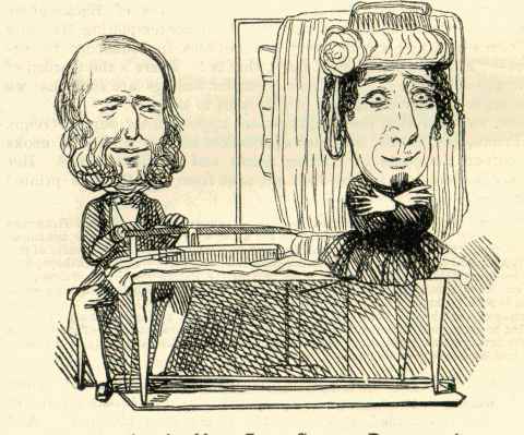 Or let us suppose it united with some such instrument as the machine shown at the Society of Arts, which composes and sets up types for the press; and, instead of composing a column of type, it were to decompose or spell the same:--as one part of the compound instrument perused each syllable, the phonic part would give it utterance; and thus, by the aid of a simple grinder at the bellows, long speeches might be uttered with all the best benefits of emphasis and oratory, without a Scotch accent like LORD BROUGHAM's, or a high key like MR. SHIEL's, or a conventicle twang like SIR ROBERT's.